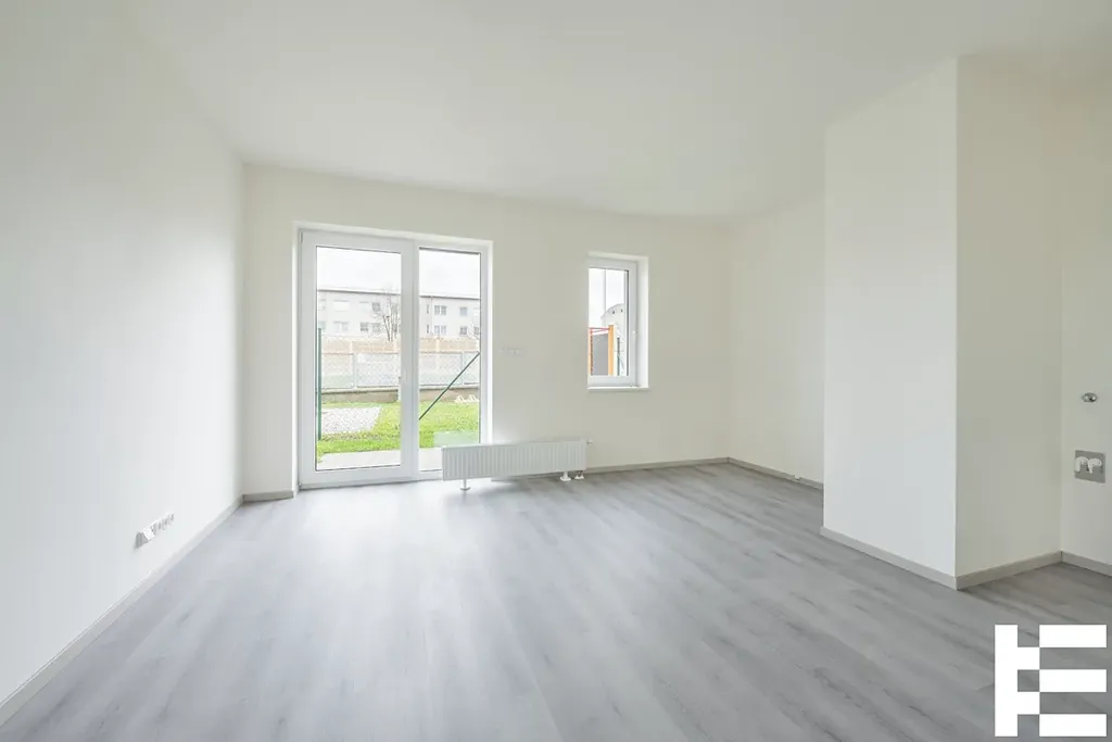 V tomto případě nabízíme jednotku 3+kk o podlahové ploše 64,91 m² (dle vyhl. 366/2013 Sb.), která se nachází v 1. NP a je členěná na vstupní chodbu (4,11 m²), obývací pokoj + kk (20,32 m²), ložnici (12,75 m²), pokoj (13,05 m²) koupelnu (3,35 m²), WC (1,50 m²). Zahrada 71,68 m² bude oplocená se vstupní brankou.
