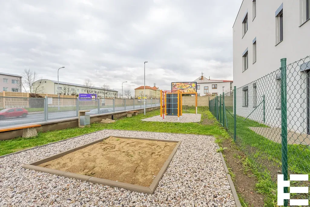 Parková úprava se zázemím pro relaxaci a volný čas – lavičky, slunečníky, dětské hřiště