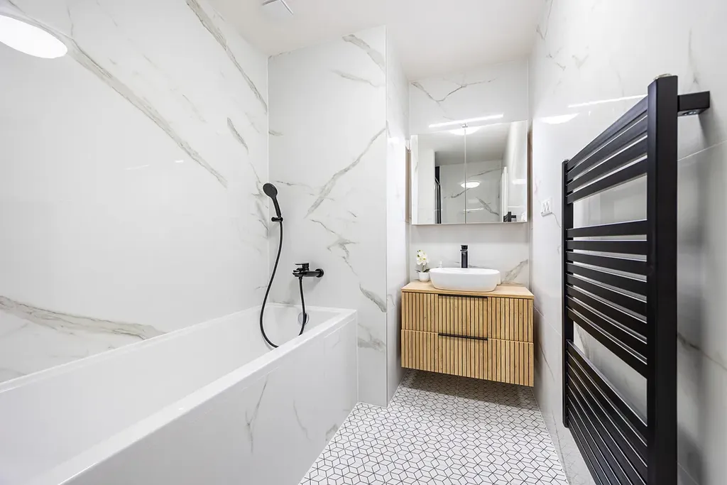 - podlahové vytápění a topný žebřík v koupelně