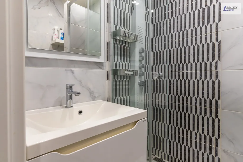 V bytě po nákladné a velmi zdařilé rekonstrukci jsou: plastová okna vč. okenních rolet, kvalitní kuch. linka vč. spotřebičů (el. horkovzdušná trouba, mikrovlnná trouba, digestoř, myčka, indukční varná deska, vestavná kombinovaná chladnička s mrazákem), v obývacím pokoji zánovní sedací souprava, konferenční stolek, obývací stěna, TV. V ložnici velká šatní skříň, manželská postel, stolek. Dále sádrokartonové podhledy, převážně úsporné LED osvětlení, podlahy v celém bytě velkoformátová luxusní dlažba, rozvody el. v mědi, novější jističe, zděné jádro, v koupelně a na WC luxusní designové obklady, voda a dopady v plastu, interiérové dveře vč. zárubní, vytápění zajišťují infrapanely, možnost internetu a kabelové TV.