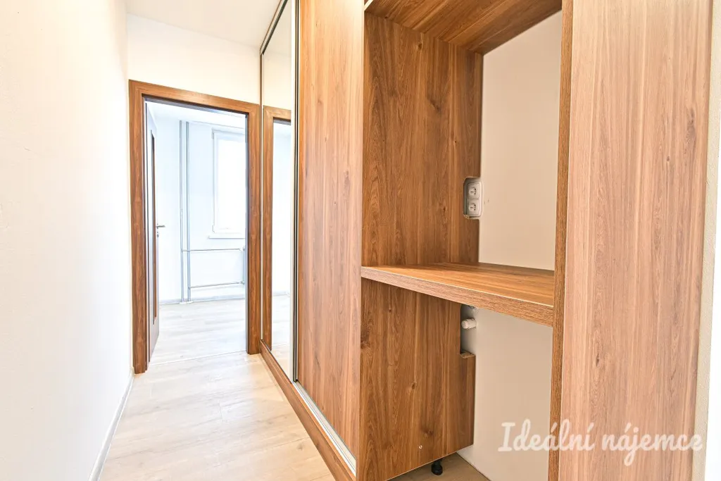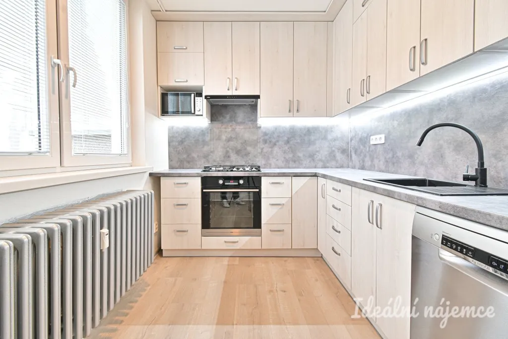 Jedná se o nezařízený byt. Vybavení zahrnuje novou kuchyňskou linku s varnou deskou, troubou a myčkou.