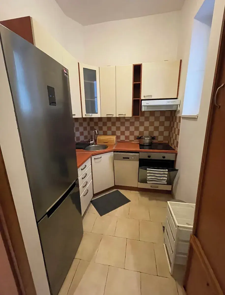 Byt je situován ve 2. patře domu s výtahem a disponuje: Vybavení bytu, myčku nádobí, troubu a varnou desku se čtyřmi plotýnkami, lednici, mikrovlnnou troubu, pračku se sušičkou, vestavěnou skříň, fitness rotoped a postel o rozměrech 200 × 200 cm s matrací, zahrnuje 55” smart TV se soundbarem. Koupelna je vybavena sprchovým koutem a podlahovým vytápěním.
