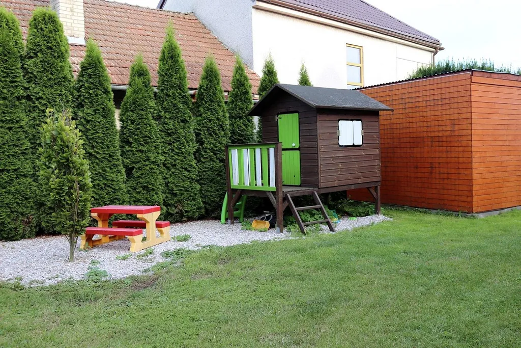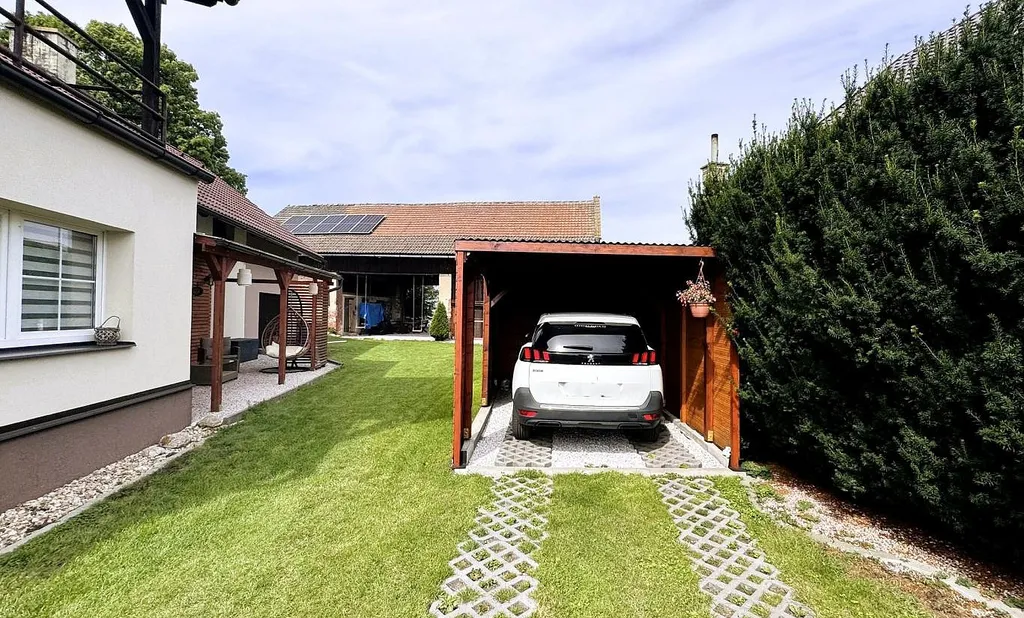 Za domem se nachází prostorná stodola o ploše cca 200 m, aktuálně využívaná jako dílna, posilovna a voliéra. Přes stodolu je vstup na pečlivě upravenou zahradu s bazénem, která poskytuje dostatek soukromí.