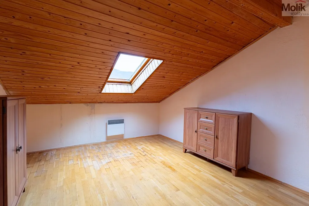 V dolním patře se nachází kuchyňský kout, dva pokoje, toaleta a technická místnost.