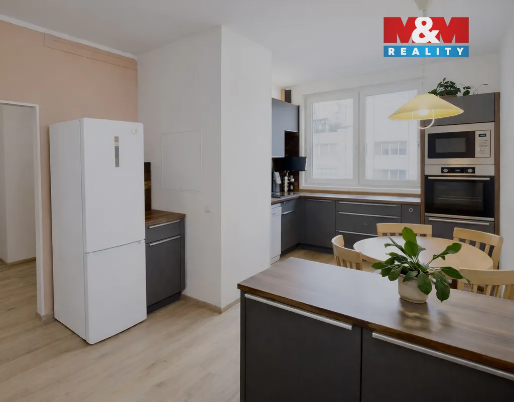 Byt je situován v 8. patře revitalizovaného panelového domu s výtahem. Dům prošel kompletní obnovou – zateplení, nová střecha, plastová okna, stupačky i moderní výtah. Samotný byt má všechny pokoje neprůchozí, což zajišťuje maximální soukromí. Součástí je kuchyně s jídelnou, obývací pokoj, ložnice se vstupem na lodžii, dva dětské pokoje, šatna, samostatné WC a velká koupelna s oknem, vanou i sprchovým koutem.