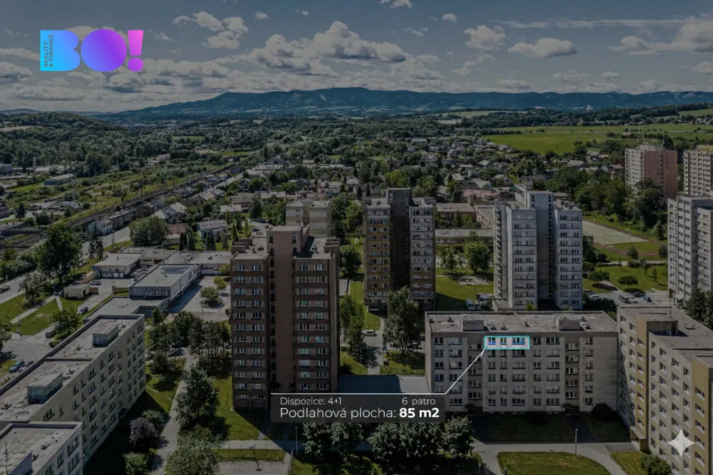 Nabízím Vám prostorný byt o dispozici 4+1 s podlahovou plochou 85,40 m² s lodžií, který se nachází v 6. nadzemním patře domu s výtahem na ulici Okružní v Českém Těšíně. Díky své dispozici poskytuje dostatek prostoru pro rodinné bydlení i pohodlný každodenní život. Byt je světlý, prakticky řešený a velkou výhodou jsou prostorné chodby, které nabízejí dostatek úložného prostoru.