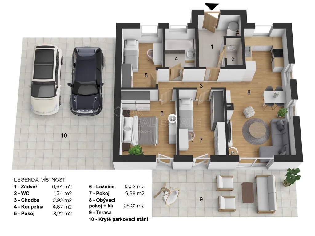 Dům s dispozicí 4+kk je navržen tak, aby každý člen rodiny měl své soukromí. Kuchyně už na vás čeká plně vybavená spotřebiči. Stačí se nastěhovat a začít bydlet.