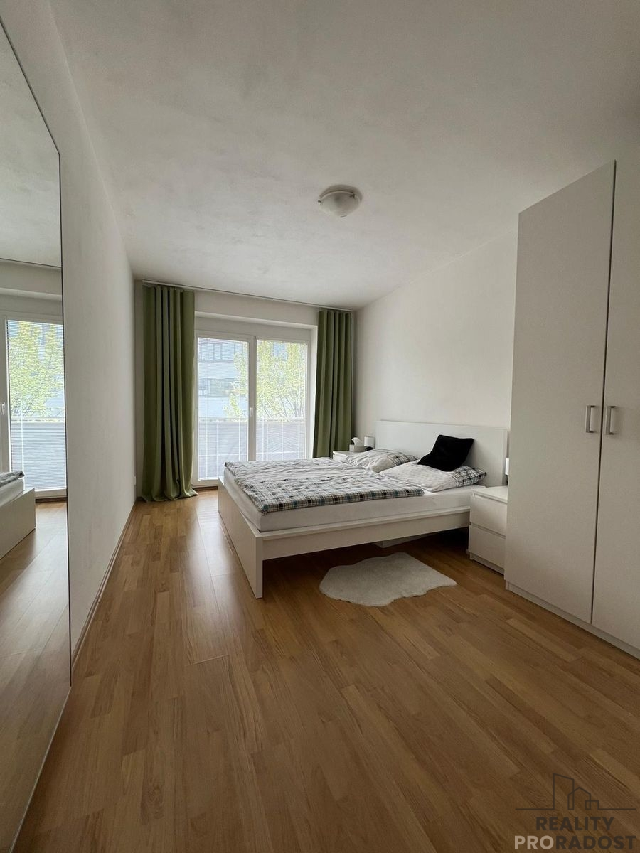 Pronájem bytu 2+kk s balkonem v novostavbě cihlového domu v Brně. Byt o velikosti 63 m2 se nachází ve 3.patře bytového domu s výtahem.