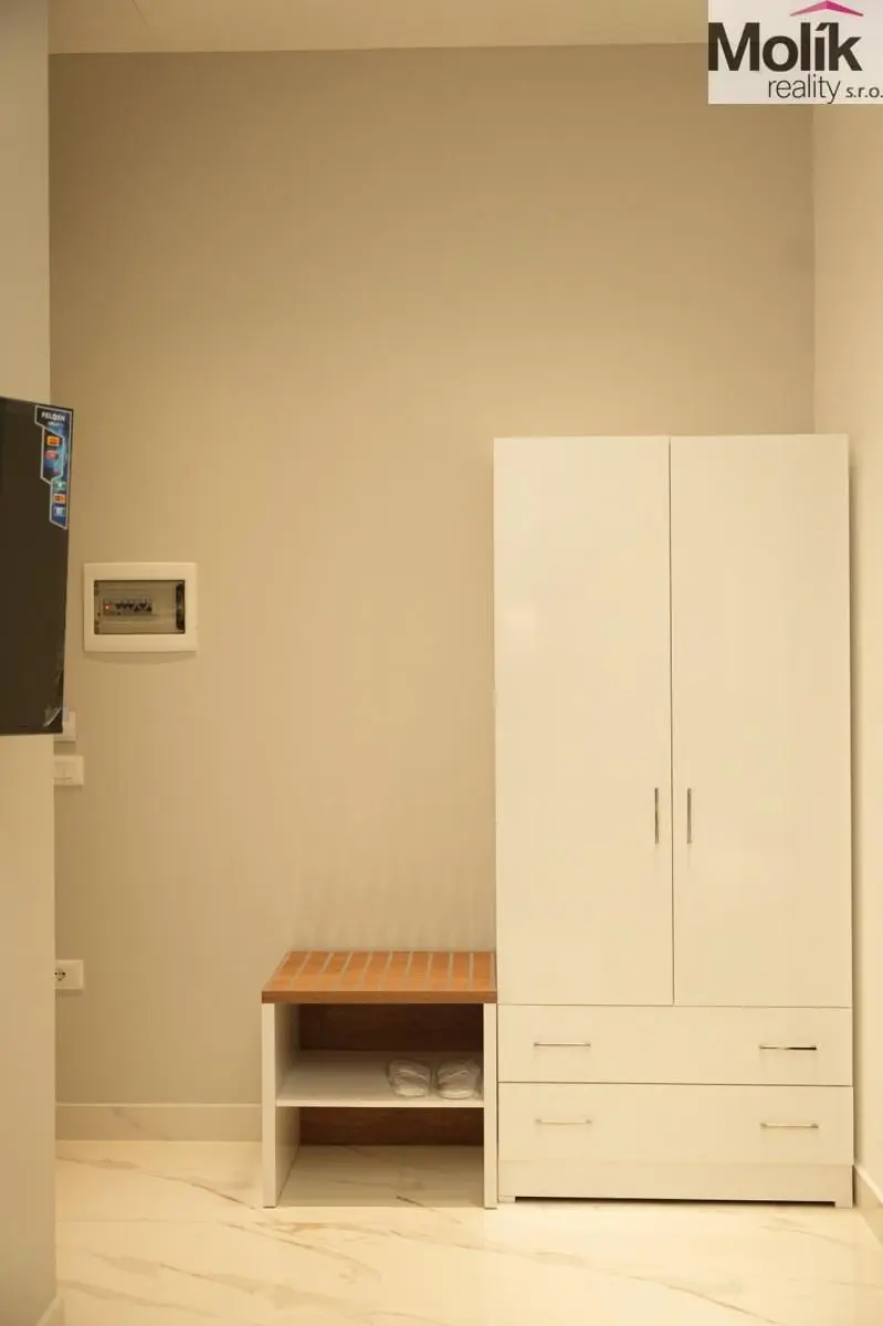 Jedno studio je vybaveno kuchyňskou linkou. Dispozice objektu umožňuje oddělený provoz každého studia, což maximalizuje výnos a flexibilitu pronájmu.