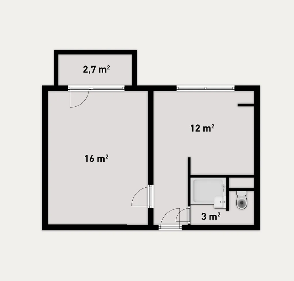 Celková podlahová plocha bytu je 33,2 m² včetně sklepu + balkon 2,7 m².