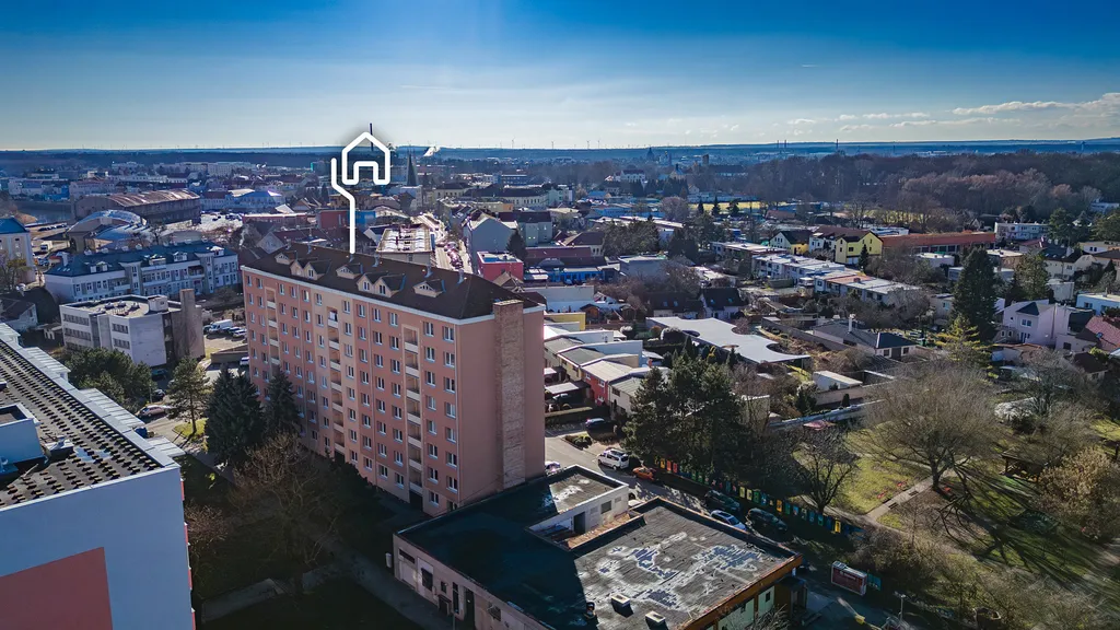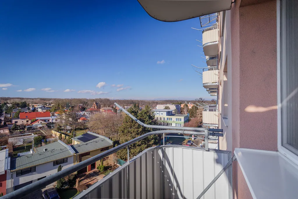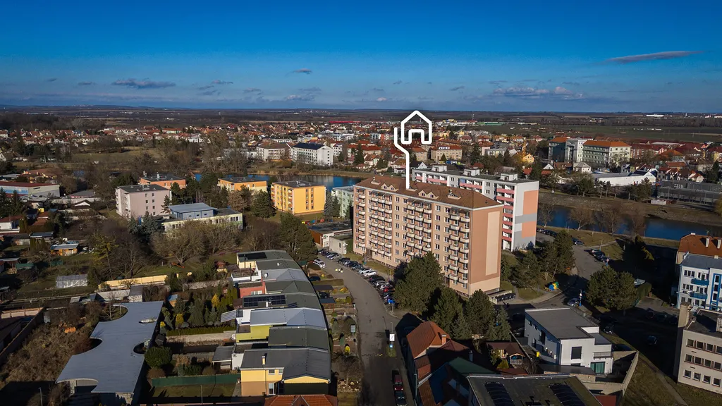 v 6. patře (8 patrového bytového domu) na ulici U splavu 11, v Břeclavi.