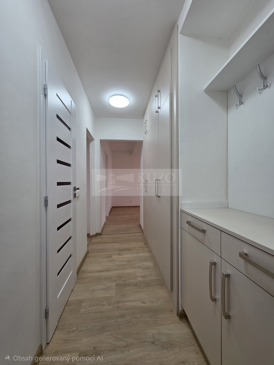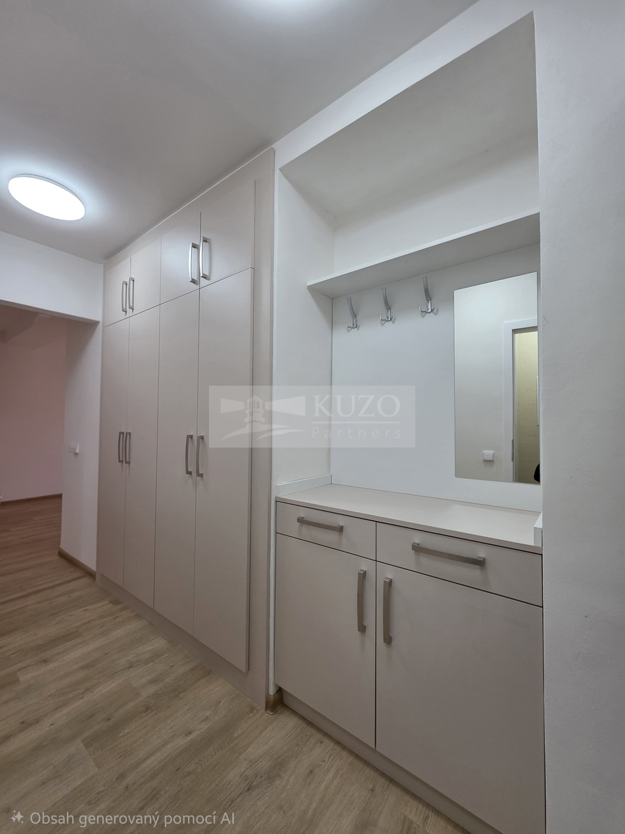 Součástí vybavení je i vestavěná myčka na nádobí, vestavěná předsíňová stěna s úložnými prostory.
