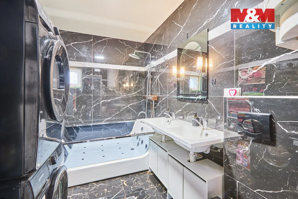 Dům je řešen v moderním stylu – exteriér je sladěn do elegantních antracitových tónů, zatímco interiér nabízí nadčasovou kombinaci bílé a černé barvy. Samozřejmostí je podlahové vytápění v celém domě, které zajišťuje vysoký komfort bydlení. Velký důraz byl kladen také na kvalitní zateplení, díky kterému je dům energeticky úsporný a nabízí nízké provozní náklady.