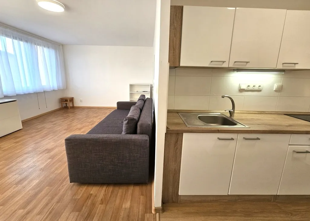 Pronájem bytu - velmi pěkný, slunný, částečně zařízený byt 1kk, 33 m2 + sklepní kóje cca 3 m2, Praha 9 - Horní Počernice, ulice Běchorská. Byt se nachází v 5.patře zrekonstruovaného a zatepleného panelového domu s novým výtahem. Dům je klidný a slušný, obývaný převážně samotnými majiteli bytů. Orientace bytu je na jih s výhledem do klidné ulice se zástavbou rodinných domů. Díky velkým oknům je byt příjemně světlý i slunný. Za domem je uzavřený zelený vnitroblok, který je přístupný pouze pro obyvatele domu, a který je možné užívat k relaxaci, posezení i sušení prádla.