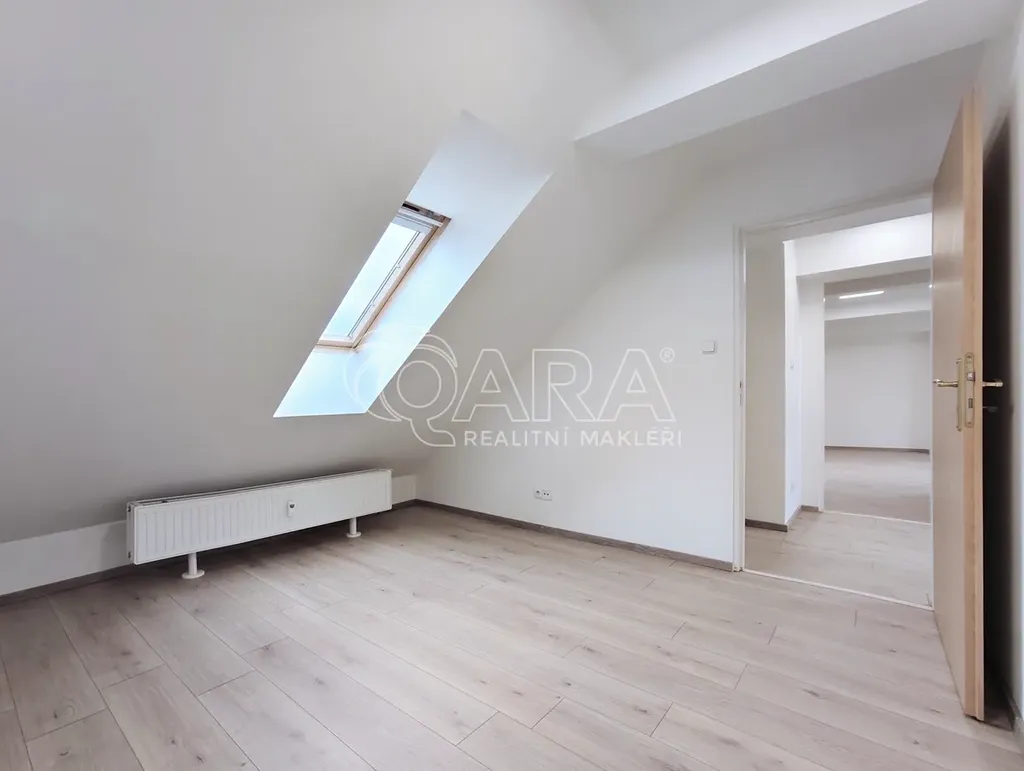 Pak je pro vás zajímavou možností pronájem mezonetového bytu dispozice 2+1 o výměře cca 69 m2, umístěného ve třetím patře cihlového domu bez výtahu v Hanusově ulici v pražské Michli. Jak vidíte z fotografií, tak se jedná o půdní vestavbu, která bytu dodává jeho charakteristické kouzlo.