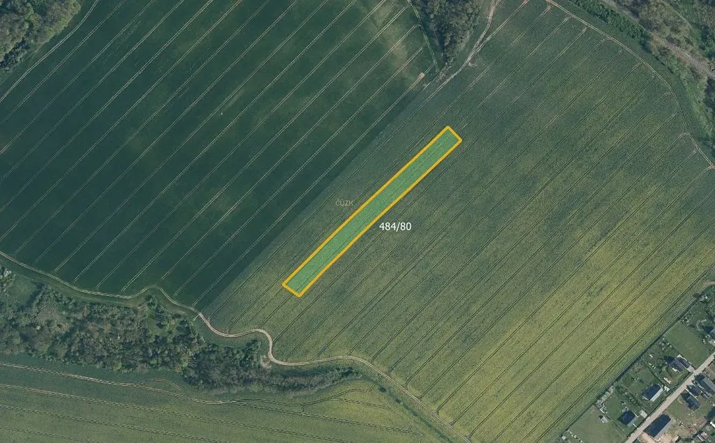 Jedná se o parcelu č. 484/80 o výměře 7 388 m². Pozemek je veden jako orná půda a je součástí úrodné zemědělské oblasti Polabí. Leží v rovinatém zemědělském bloku v blízkosti obce.