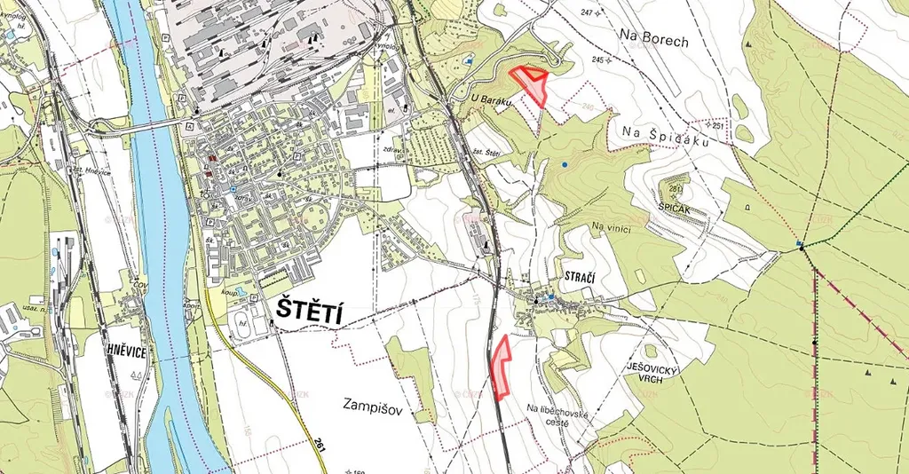 K prodeji je vlastnictví na pozemcích parc. č. 792, zapsaný na LV 1340 v KÚ Stračí a na pozemcích parc. č. 1657/2 a 1673/2 zapsaných na LV 118 v KÚ Štětí II.