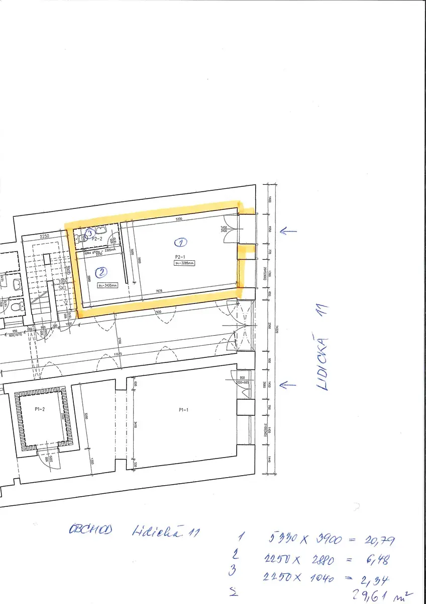 Jedná se o prostor o celkové výměře 29,61 m2 nacházející se v přízemí budovy. Prostor tvoří hlavní prodejní místnost, zázemí a sociální zařízení (viz půdorys). Vstup do prostoru je samostatný, přímo z ulice Lidická. Vhodné k provozování obchodu s nepotravinářským zbožím nebo poskytování služeb.