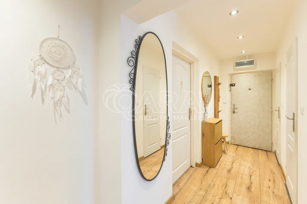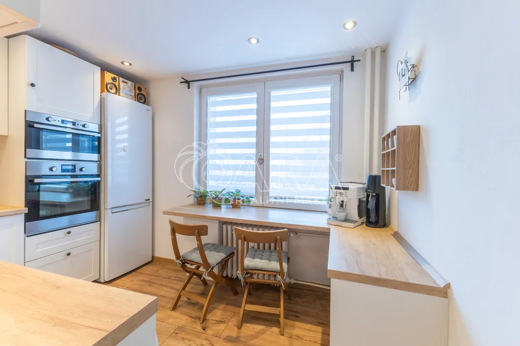 Byt prošel rekonstrukcí – nové rozvody elektroinstalace, rozvody vody v plastu, nové plovoucí podlahy, omítky a kompletní výmalba.