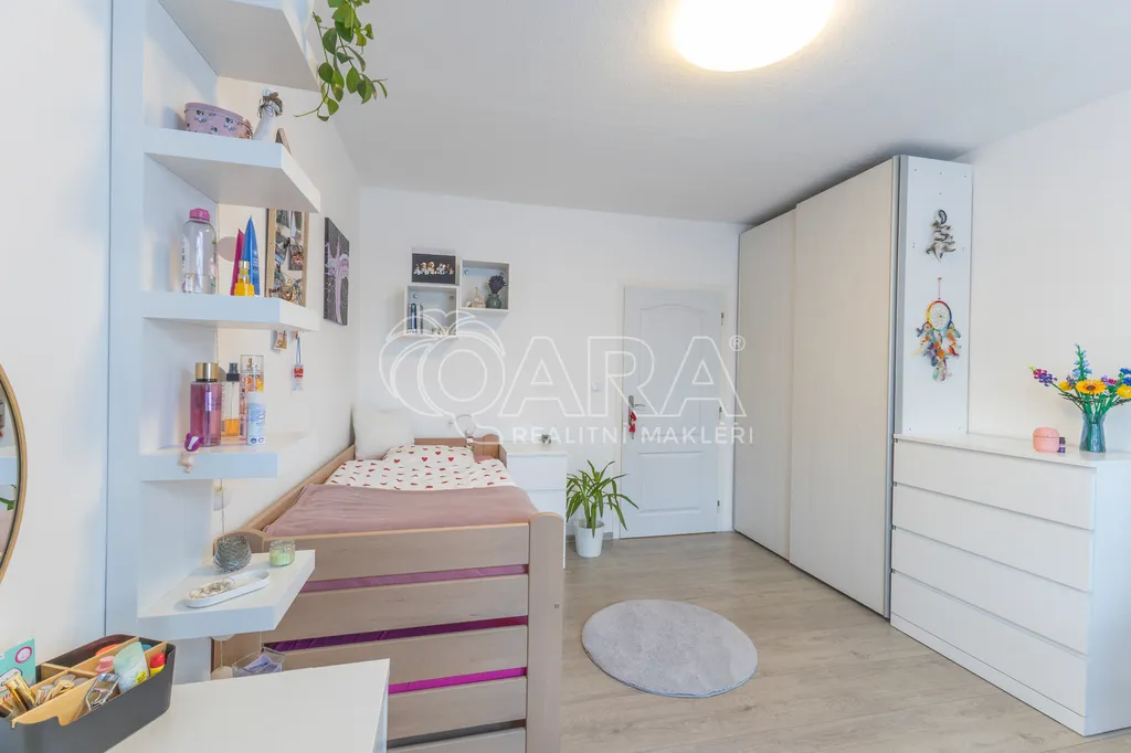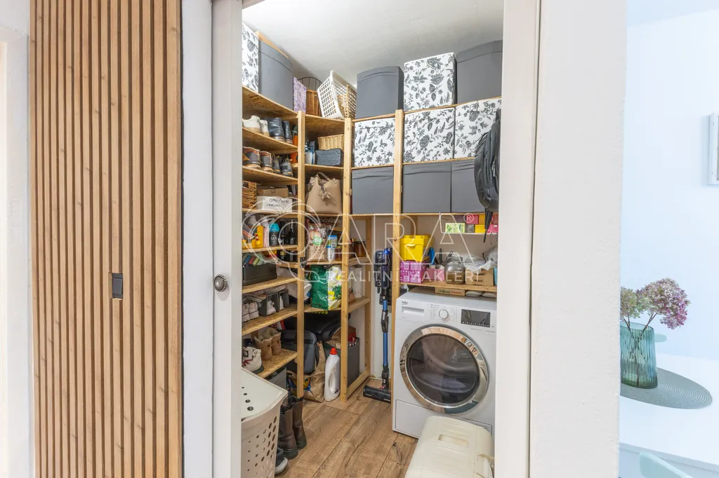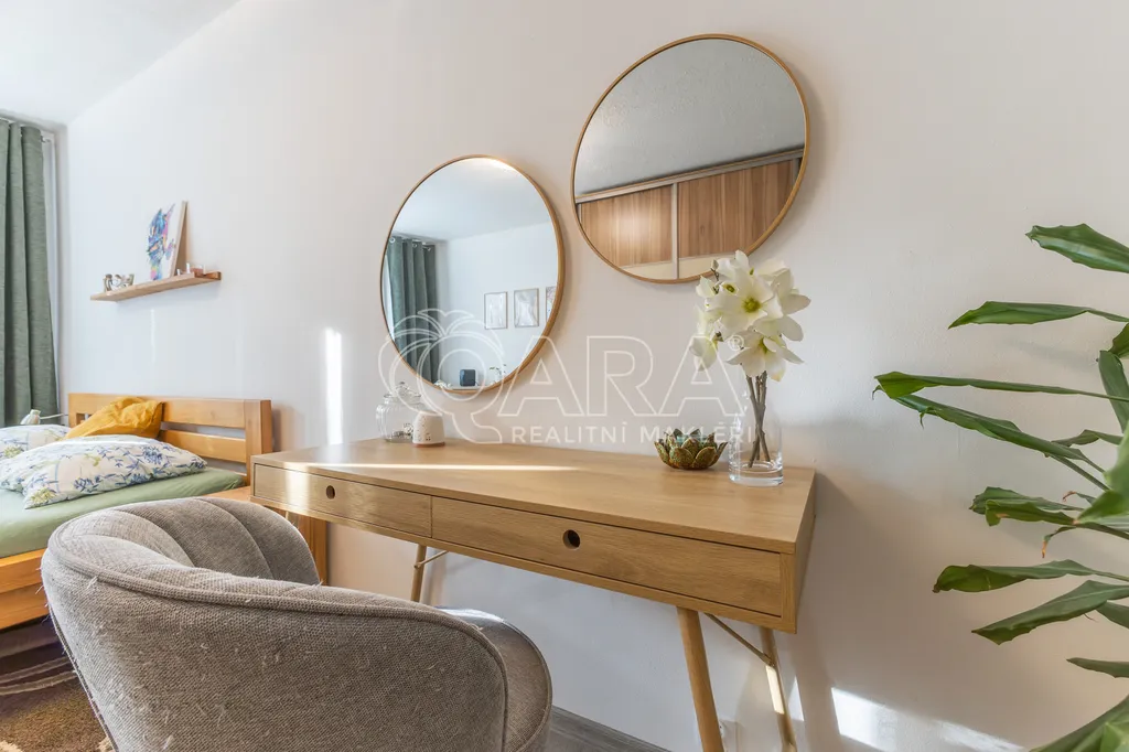Byt nabízí dostatek úložného prostoru – v ložnici se nachází šatní skříň, v prostorné chodbě je komora s velkým úložným prostorem.
