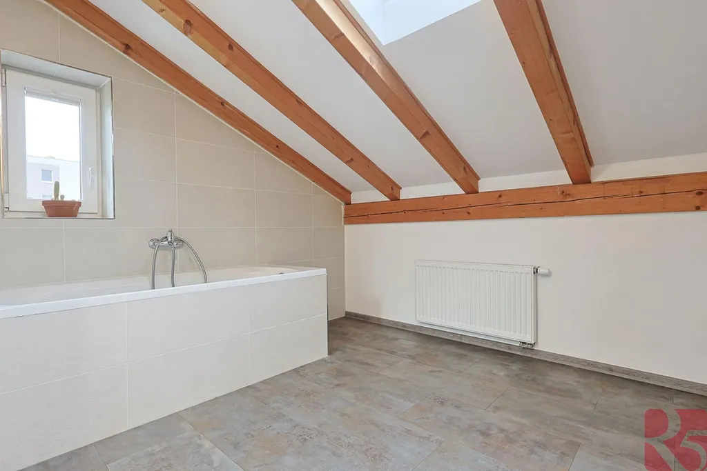 Zde dvě podkrovní místnosti s klimatizací a velká koupelna s vanou a toaletou.