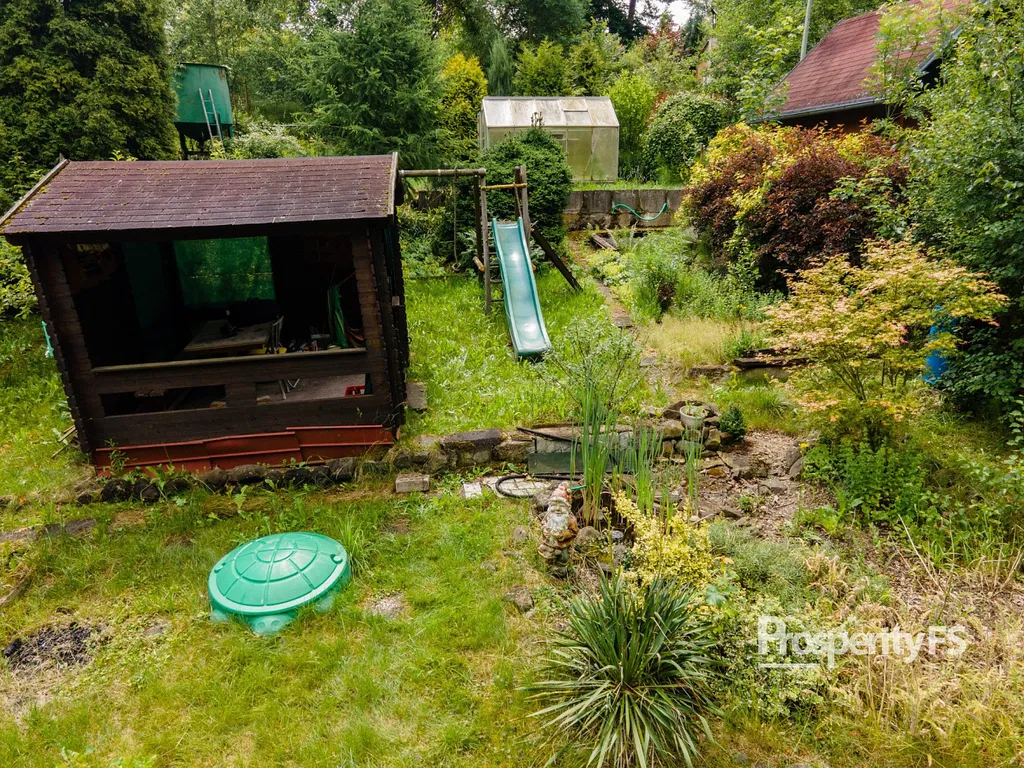 Chata o zastavěné ploše 17m², do které není zavedena elektřina, která je v řešení, řád se sezónní vodou je přiveden na pozemek. Zahrada, která je mírně svažitá a v katastru vedena jako zahrada o výměře 561m², zajištuje výborný předpoklad pro aktivní i relaxační odpočinek a dostatek prostoru pro bazén, trampolínu, pěstování ovoce i zeleniny