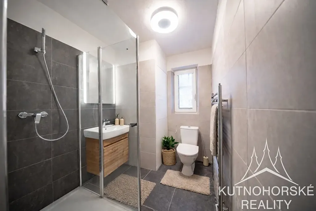– koupelna se sprchovým koutem spojená s WC