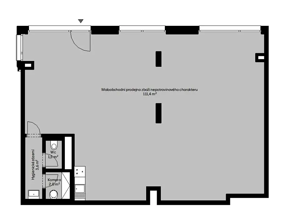 Nabízí: velké výkladce orientované do frekventované pěší zóny,
