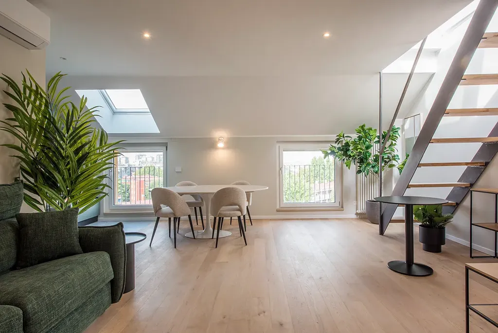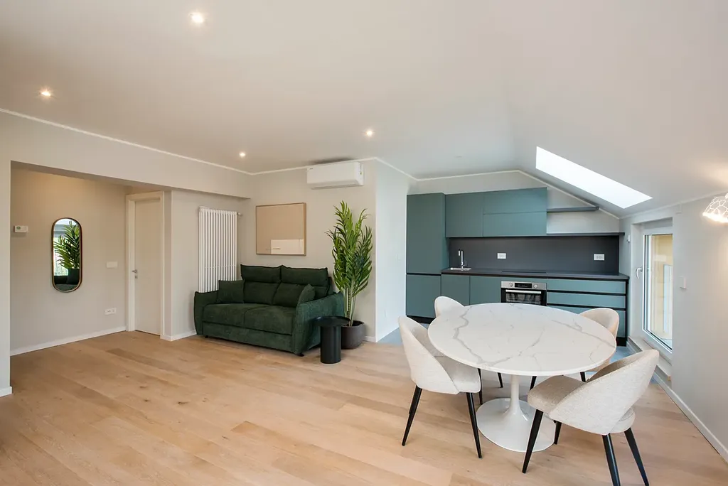 Nabízíme k prodeji exkluzivní podkrovní byt 3+kk v žádané lokalitě Milána, v rezidenční čtvrti. Tento prostorný byt se nachází v klidné části obce v sedmém patře smíšené budovy, která byla původně postavena v roce 1965 a kompletně zrekonstruována v roce 2015. S užitnou plochou 90 m² a velkou střešní terasou s panoramatickým výhledem na město nabízí ideální prostor pro bydlení náročnějších klientů.