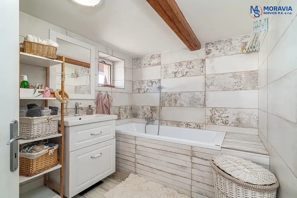 Přístup na půdu nabízí možnost skladování nebo vybudování dalších pokojů.