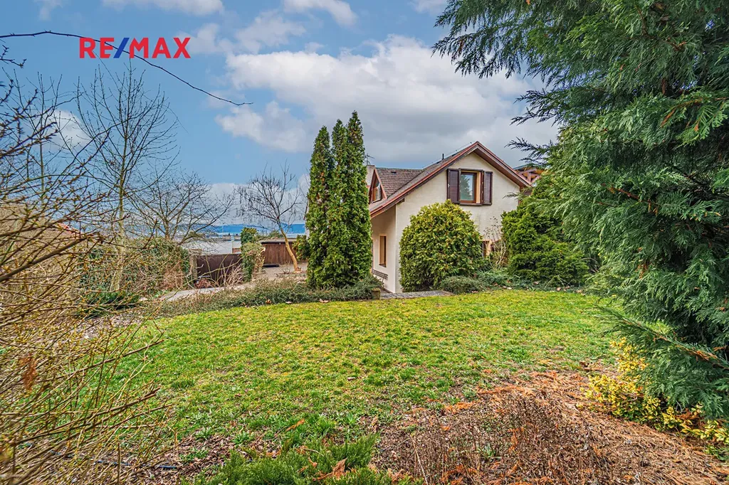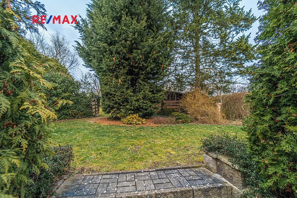 Na pozemku se nachází slunná zahrada, ideální pro relaxaci i rodinné aktivity, a dřevník o ploše cca 10 m².