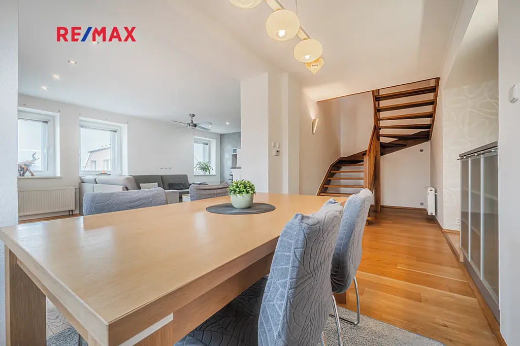 Dvoupodlažní rodinný dům s užitnou plochou 165 m² stojí na pozemku o velikosti 482 m² a nabízí promyšlenou dispozici 5+1, která funguje pro každodenní rodinný život – dnes i do budoucna.
