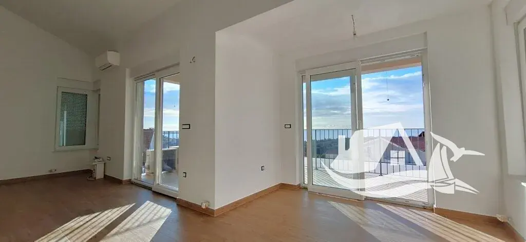 Penthouse o celkové ploše 85 m² je navržen s důrazem na komfort a funkčnost. Dispozice zahrnuje prostorný vstupní prostor, dvě ložnice, dvě moderní koupelny a otevřený obývací pokoj propojený s kuchyní a jídelnou. Dominantou jsou dvě velké terasy s otevřeným panoramatickým výhledem na azurové moře a staré město. Tento výhled je trvalý a nebude v budoucnu zastíněn další výstavbou, což je v Primoštenu výjimečné a zvyšuje dlouhodobou hodnotu nemovitosti. K apartmánu náleží jedno parkovací místo.