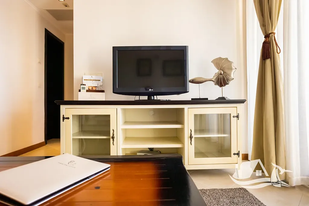 Nabízený dvoupokojový apartmán se nachází v 1. patře budovy Marina Village, blok 1, v části resortu, která je dlouhodobě velmi žádaná pro krátkodobý i hotelový pronájem. Dispozice je praktická a osvědčená pro vlastní užívání i investici. Obývací pokoj je doplněn samostatnou toaletou pro hosty, ložnice má vlastní koupelnu s toaletou a z terasy se otevírá příjemný výhled do areálu resortu. Přímý výhled na moře není, což se pozitivně odráží v ceně, zároveň však apartmán nabízí klidnější polohu a snadnou dostupnost všech služeb.