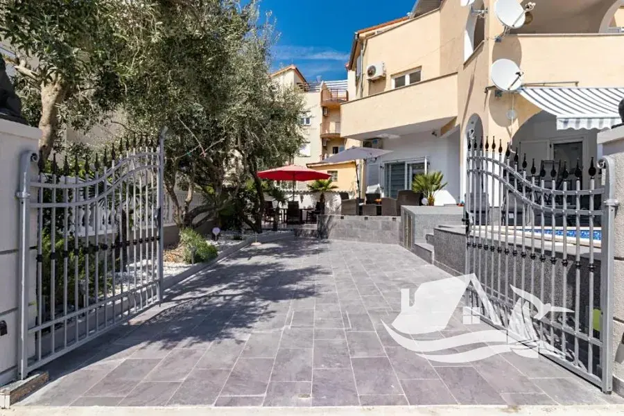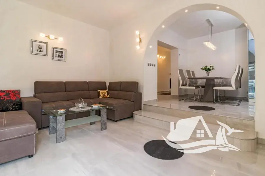 V přízemí moderní budovy s pouhými pěti jednotkami se nachází luxusní zařízený apartmán, který kombinuje soukromí, komfort a investiční potenciál v jedné z nejžádanějších lokalit Istrie.