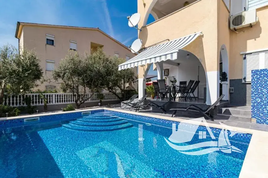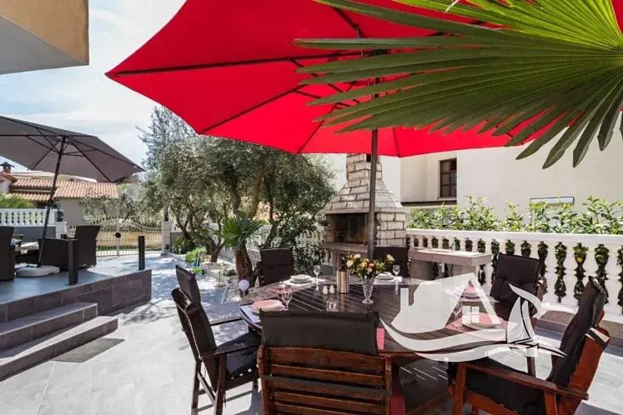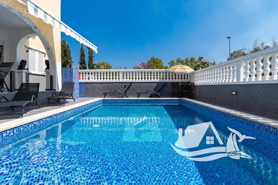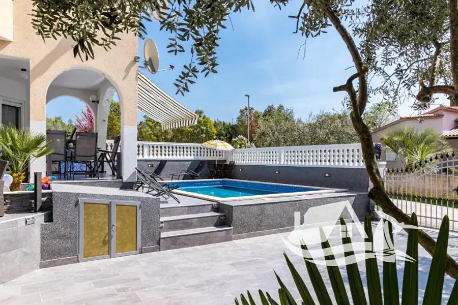 Nemovitost o celkový rozloze 147 m² nabízí promyšlenou dispozici zahrnující světlý obývací pokoj propojený s kuchyní a jídelnou, dvě ložnice, koupelnu a vstupní chodbu. Z jídelní části je přímý vstup na terasu, která plynule navazuje na soukromý venkovní bazén o velikosti 24 m². Vedle bazénu je k dispozici solární sprcha a letní kuchyně s grilem, ideální pro dlouhé večery s rodinou a přáteli, kdy se z obyčejného dne stává vzpomínka na celý život.
