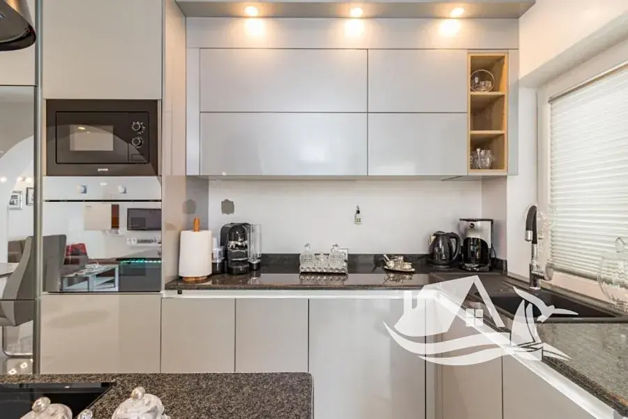Apartmán je vybaven moderním a funkčním nábytkem, kvalitními PVC okny a dveřmi, keramickou dlažbou i parketami. Dispozice je praktická a vzdušná, materiály jsou zvoleny s důrazem na dlouhou životnost a snadnou údržbu. Nemovitost je připravena k okamžitému užívání bez nutnosti dalších investic, což z ní činí atraktivní volbu jak pro vlastní bydlení, tak pro krátkodobé turistické pronájmy.