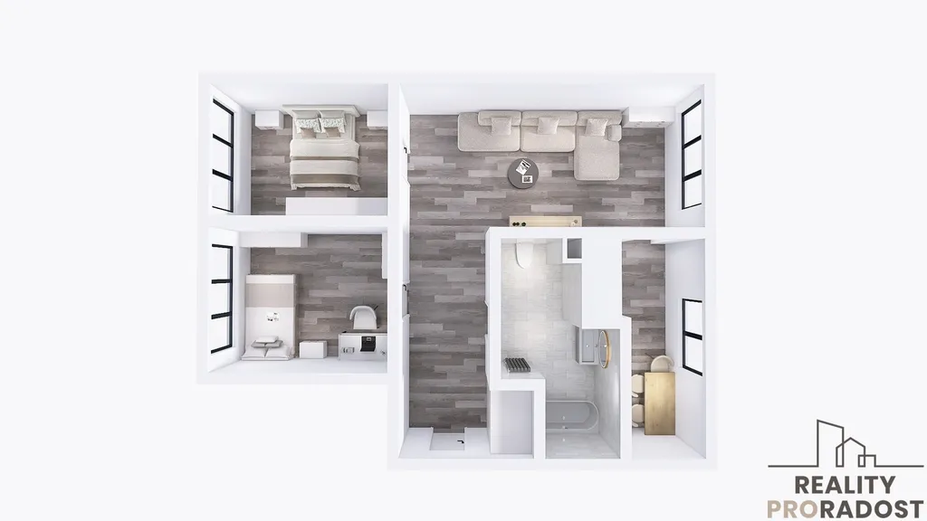 Tento byt Vám nabídne velký prostorný obývák, 2 neprůchozí pokoje, kuchyň, která se do pěkně tvarovat. Velká koupelna by potřebovala nový kabátek, ale zároveň, je možnost, si jí přizpůsobit dle sebe. Chodba nabízí úložný prostor.