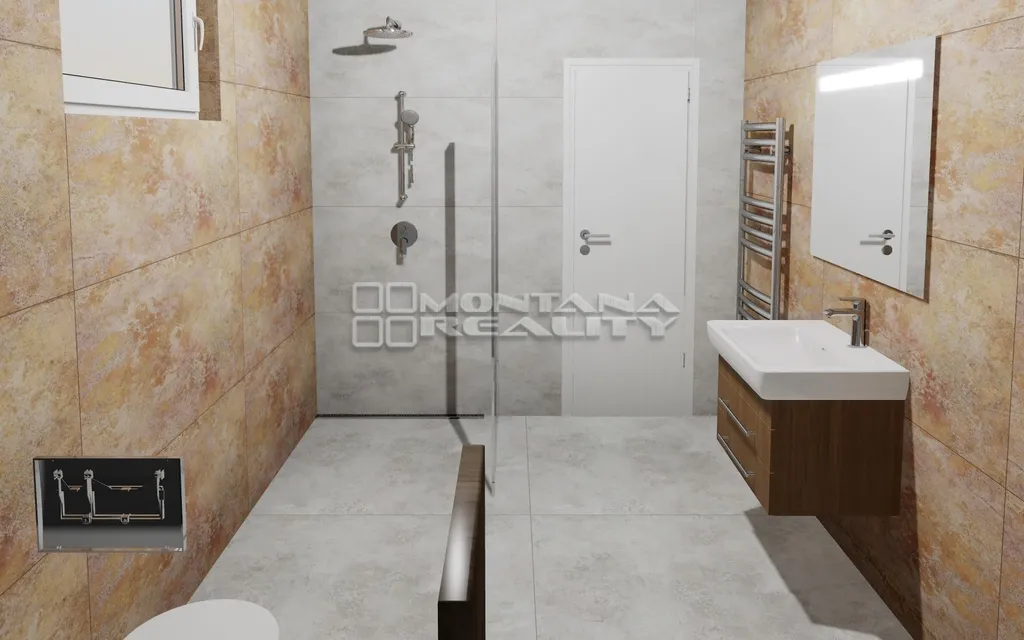 Nabízíme k prodeji nízkoenergetickou novostavbu rodinného domu ve Velkém Týnci u Olomouce. Dům je velmi velkoryse řešen jako 5+kk s technickou místností. Parkování pod přístřeškem před domem pro 2 auta a dalším místem na parkování. Přízemí je dispozičně řešené se zádveřím a vstupní chodbou, koupelnou s WC, pokojem. Hlavní obytný pokoj se vstupem přes prosklený portál na terasu a zahradu. Kuchyňská část s praktickou komorou, navazující na masivní dřevěné schodiště do patra. V prvním patře 3 samostatné pokoje a komora se šatnou. Dále pak v patře koupelna s možností umístění vany a sprchového koutu a toaletou. Dům disponuje velmi příjemným podlahovým topením, s ovládáním přes tepelné čerpadlo. Fasáda je s designových panelů a kombinací dřeva. Okna jsou plastová šesti komorová s trojskly včetně vstupních dveří. Nemovitost je ve vysokém standartu, s kvalitní stavební technologií, dále má nachystanou přípravu na venkovní žaluzie, klimatizaci, zabezpečovací systém. Celková užitná plocha domu činí 148 m2, dále pak zastřešené venkovní stání o výměře 30 m2, s pozemkem o celkové výměře 502 m2. Velkou výhodou je umístění domu, jedná se o rohový dům na ulici Podštampilí a Leopolda Prečana ve Velkém Týnci. Nemovitost je nyní nachystaná s možností dokončení podlahových krytin, obložek s dveřmi a koupelen, není zahrnuto v ceně. Pro klienty, kteří hledají prostorné bydlení s výbornou dostupností do města. Prohlídky dle dohody, více informací u realitního makléře Ondřeje Rudolfa.