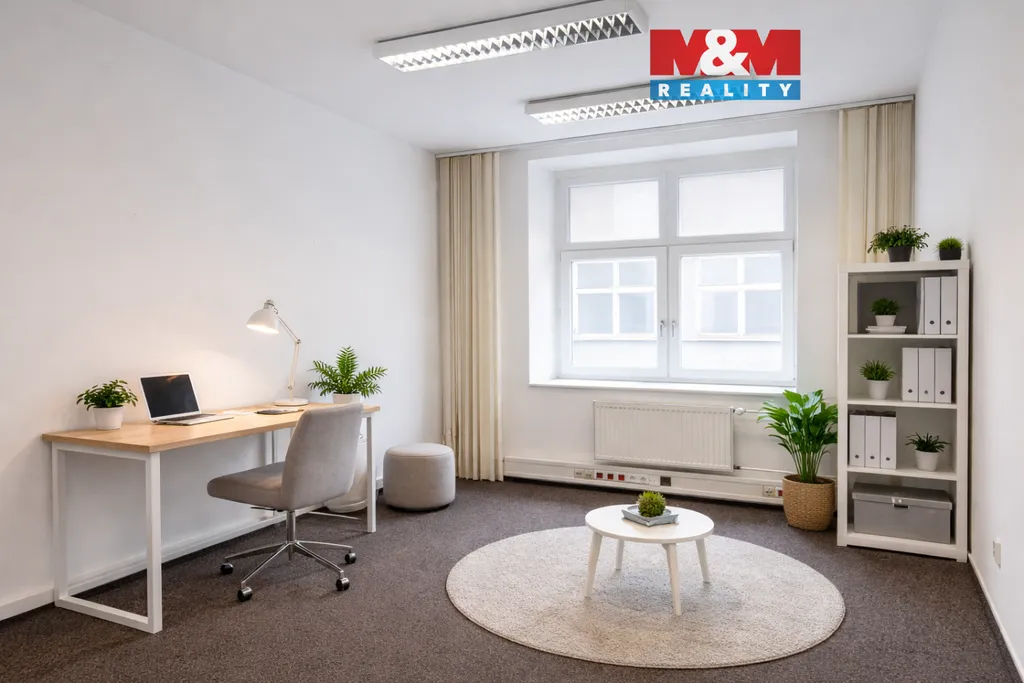 Flexibilní uspořádání: Jedná se o dvě propojené místnosti, ideální pro oddělení pracovních zón (např. hlavní kancelář + zasedačka/administrativa).