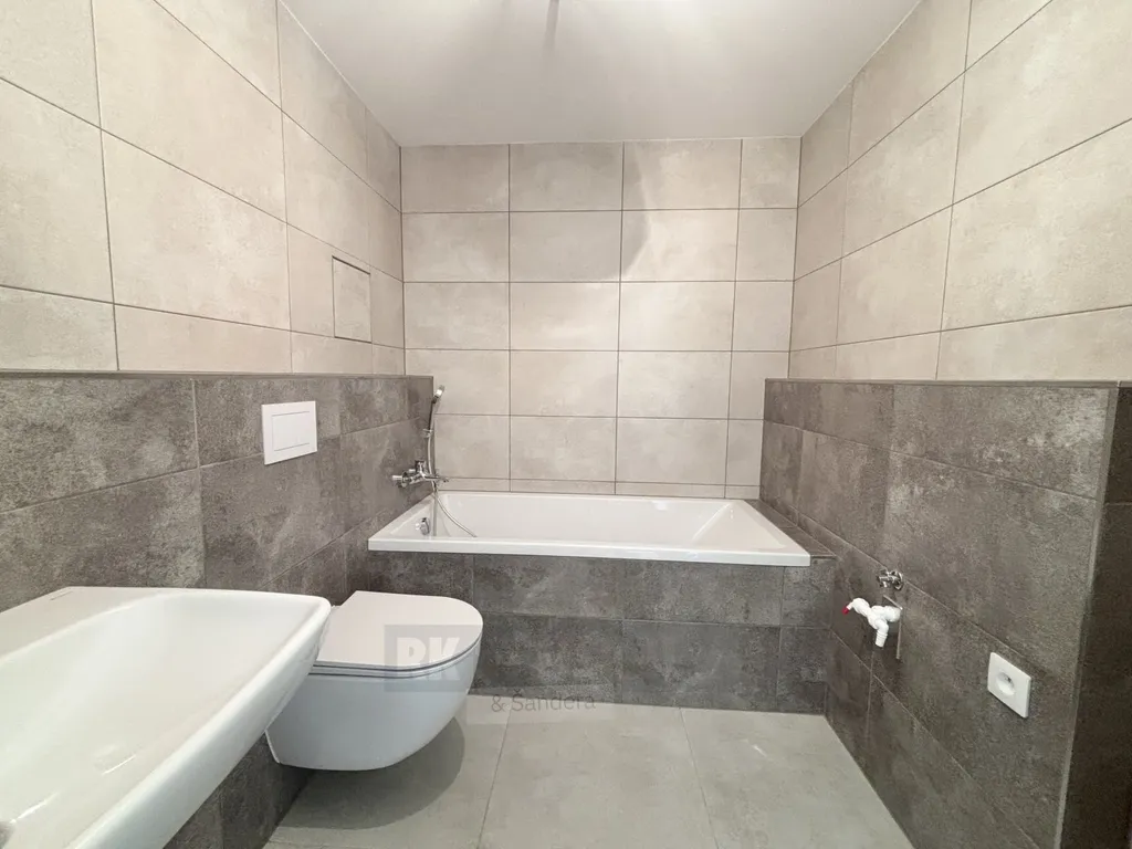 Při vstupu vás přivítá předsíň s dostatkem prostoru pro skříně. Moderní koupelna je vybavena vanou, toaletou a zrcadlem, s prostorem pro pračku. Hlavní prostorná obytná místnost se vstupem na balkon poskytuje dostatek denního světla. Kuchyňský kout s plně vybavenou kuchyní včetně spotřebičů – lednice, vestavná trouba, myčka nádobí, digestoř. Součástí pronájmu je skladovací komora - sklep, parkovací stání - spodní lift parker, a možnost užívání společné kolárny.