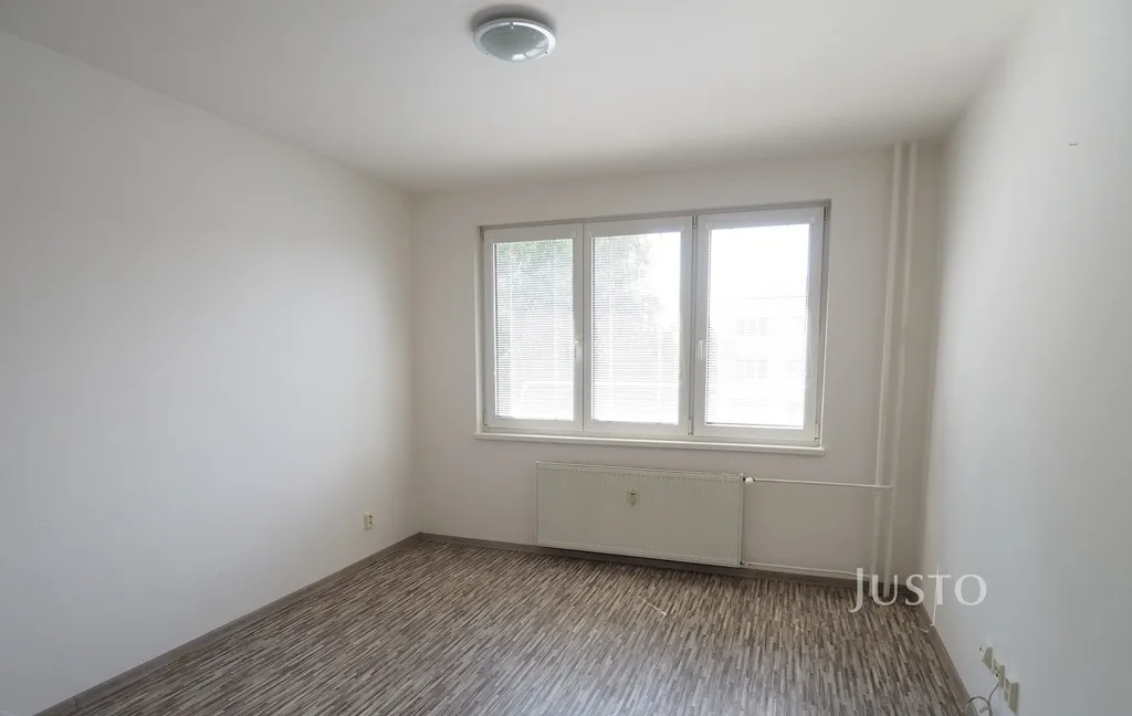 Dispozičně byt nabízí obytný prostor s kuchyňskou linkou a elektrickým sporákem a zděnou koupelnu.