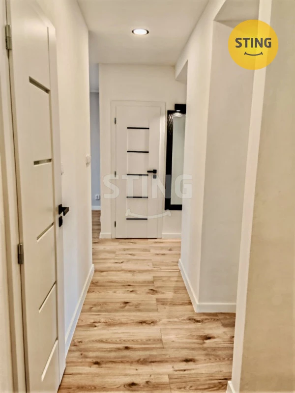 Po rozsáhlé rekonstrukci byt nabízí hezké útulné a klidné bydlení s veškerým komfortem. Spojením kuchyně a obývacího pokoje s balkonovým oknem vzniklo příjemné místo k rodinnému zázemí a domácí pohodě. Další dva samostatné a výměrou prostorné pokoje, z nichž jeden má balkon a v blízké budoucnosti bude zrekonstruován na větší zasklenou lodžii, zajistí soukromí pro každého člena domácnosti. Výhodou je i samostatná šatna kam lze instalovat v případě potřeby sušičku. Koupelna sestává ze sprchového koutu 80 x 110 cm, odkládací niky, skříňky s umyvadlem a místem na pračku. Na limit místa, který původní stav koupelny nabízel, se rekonstrukcí dosáhlo mnohem pohodlnějšího a většího prostoru. WC je samostatné.