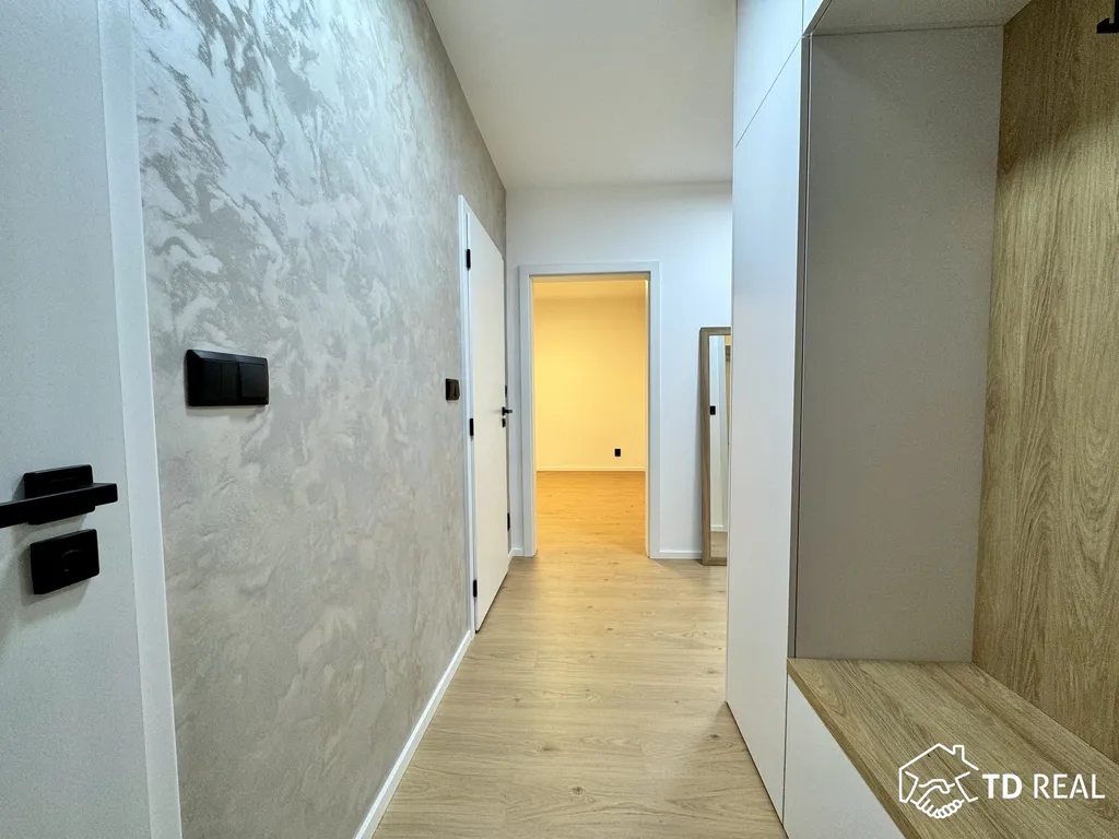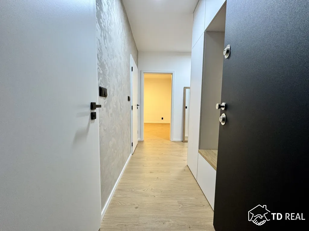 Dispozice: vstupní předsíň se vstupy koupelny, toaleta je zvlášť, vstup do obývacího pokoje (18m²) na který navazuje kuchyně. Dále je k dispozici ložnice (13m²), prostorná šatna a dětský pokoj (18m²). Z dětského pokoje je vstup na lodžii. Byt prošel aktuálně nákladnou rekonstrukcí.
