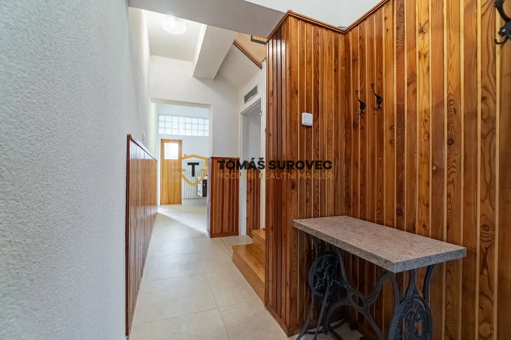 Dům, který nabízí víc než jen bydlení. Ve Slavičíně na adrese Dlouhá 646 na vás čeká dvougenerační rodinný dům se dvěma samostatnými bytovými jednotkami, ideální jak pro rodinné bydlení, tak i pro podnikání nebo investici. V přízemí najdete útulné 1+1 po rekonstrukci – kuchyňský kout, obývací pokoj s krbem s krbovou vložkou, která tvoří příjemný doplněk k vytápění, koupelnu se sprchovým koutem a přímý vstup na zahradu. Terasa s posezením a pergolou poskytuje příjemné soukromí. V horních patrech se nachází prostorný mezonetový byt 5+1 rozdělený do dvou pater a mezipatra. Byt má novou kuchyňskou linku, renovované parkety a koupelnu s masážní vanou. V podkroví je zrekonstruovaná ložnice s nádherným výhledem. Dům má také garáž, dílnu, sklep a možnost parkování dvou aut před domem. Okna jsou v celém domě trojskla, střecha byla rekonstruována kolem roku 2010 a je osazena solárními panely pro ohřev vody, což výrazně snižuje provozní náklady. Vytápění celého domu je řešeno plynovým kotlem a ústředním topením s radiátory, které jsou i v menší jednotce. Dům se nachází v klidné lokalitě s výbornou dostupností – škola, školka i obchody jsou v docházkové vzdálenosti. Ideální volba pro ty, kteří hledají prostorný a univerzální dům v příjemné lokalitě.