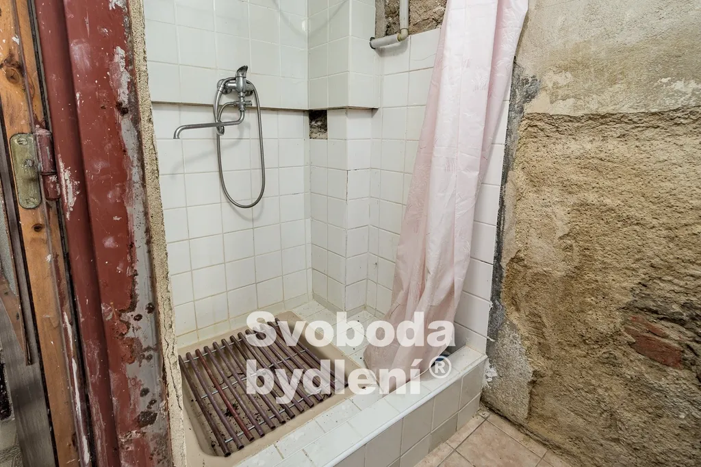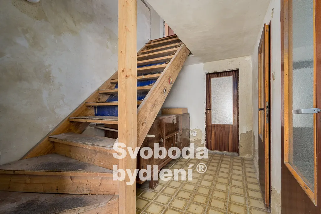 Vlevo od vstupu do vejminku se nachází dveře do bývalého chléva ( cca 15 m2). Poslední dveře vedou do bývalé dílny (cca 90 m2, výška stropu cca 2,5m), ze které je vstup do zadní místnosti (cca 13 m2).