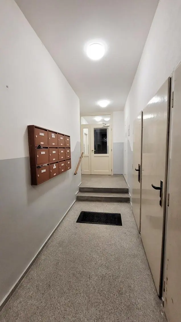 Exkluzivně nabízíme k prodeji byt o dispozici 3+KK (2+1) s celkovou rozlohou 69,7 m2 jehož příslušenství je tvořeno balkonem (1,5 m2) v klidné části Praha 4 - Braník. Jedná se o byt v původním stavu vhodnému k rekonstrukci. Stav bytu je patrný z aktuálních fotografií. Byt se skládá z obývacího pokoje 20,73 m2, ložnice 15,7 m2, obytné haly 11,5 m2, kuchyně 10,71 m2, předsíně 4,55 m2, koupelny 2,72 m2, WC 0,9 m2, spíže 0,9 m2 a komory 0,55 m2. Skica půdorysu přidána k fotografiím. Byt je situovaný do 2. nadzemního podlaží z celkových čtyřech podlaží klidného cihlového domu z počátku sedmdesátých let minulého století. Průkaz energetické náročnosti budovy se zpracovává a proto je uvedena hodnota G. Na domě byla rekonstruována střešní krytina, vyměněna okna za plastová, vstupní dveře a systém zvonků, páteřní rozvod elektřiny včetně rekonstrukce chodeb, vodovodní stoupačky plastové s vodoměry a také byla modernizována společná plynová kotelna, která zajišťuje otop a dodávku TUV. Veškerá občanská vybavenost v blízkém okolí domu, dopravní obslužnost zajištěna četnými autobusovými či tramvajovými spoji. V těsné blízkosti domu se nachází cyklostezka, dětské hřiště. Pro více informací či se zájmem o prohlídku nás neváhejte kontaktovat.
