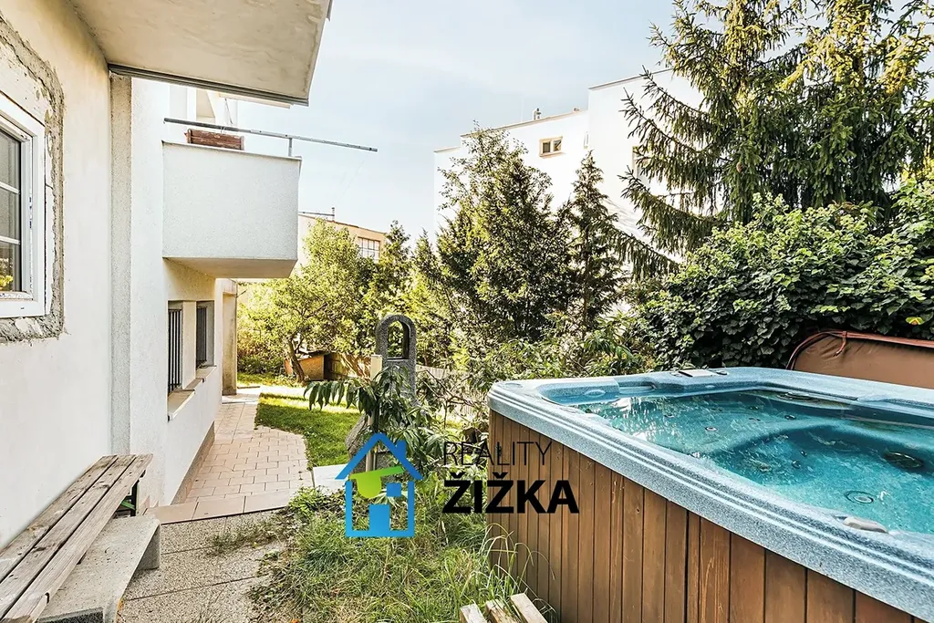 V suterénu se nachází garáž a skladovací prostory, dále samostatná garáž na pravé straně domu. Součástí nemovitosti je udržovaná zahrada, která nabízí klidné venkovní posezení.