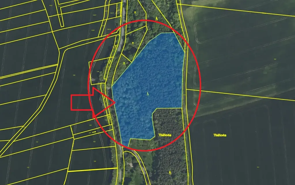 - p.č. 1594 vedená jako lesní pozemek o celkové výměře 16 324 m2, z toho vlastníme podíl 2/3 tedy 10 883 m2 (stáří lesa 65 let - zastoupení dřevin akát, stáří lesa 46 let - zastoupení dřevin borovice).