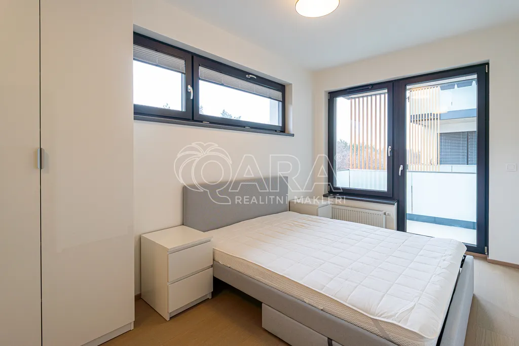 Nabízím k dlouhodobému pronájmu zcela nový byt 2+kk o velikosti 51,2 m² s balkonem. Byt se nachází v 3. NP novostavby v projektu Malešický háj. Okna jsou orientována na severovýchod a mají venkovní elektrické žaluzie, které zajišťují komfortní regulaci světla. K bytu náleží také sklepní kóje.